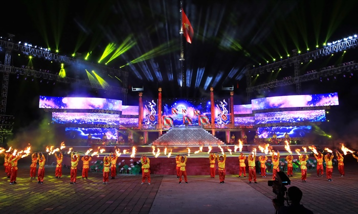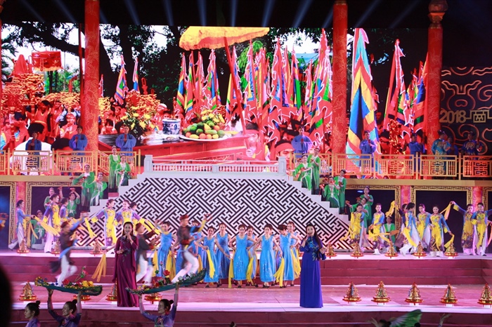 Chương trình nghệ thuật khai mạc Festival Huế 2018 với chủ đề “Huế - Tỏa sáng miền di sản” chính thức diễn ra lúc 20h tối nay tại Quảng trường Ngọ Môn (Kinh thành Huế) hứa hẹn là màn mở đầu đầy ấn tượng cho những ngày lễ hội trên vùng đất xứ thần kinh này. Sân khấu khai mạc được xây dựng trên diện tích hơn 850m2, với thiết kế 4 tầng diễn và nhiều điểm trang trí mang đậm bản sắc văn hóa Huế, mà điểm nhấn chính là hình ảnh mô phỏng sân khấu của di tích Nhà hát Duyệt Thị Đường.