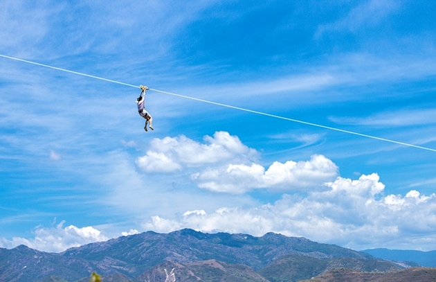 Thử thách “Cơn thịnh nộ của thần Zeus” tại VinWonders Phú Quốc là sự phấn khích tột độ khi du khách được “lượn” qua những đỉnh cao 50m với tốc độ 110km/h.