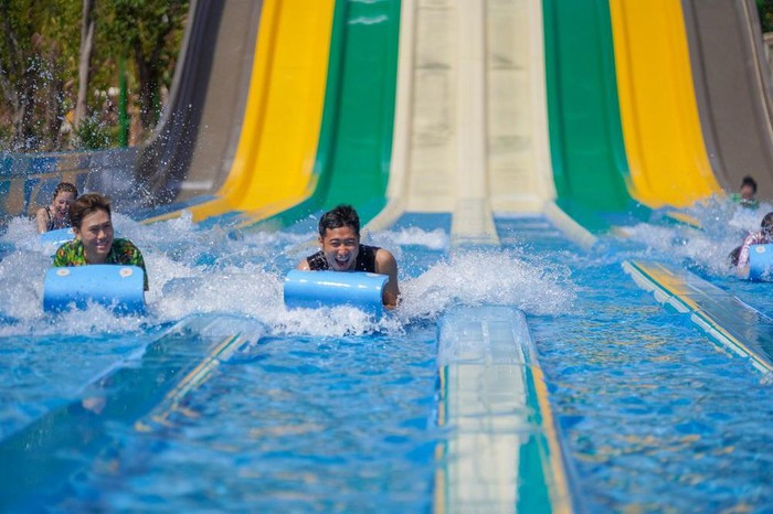 Aquatopia Water Park sẽ là điểm nhấn rực rỡ cho chuyến đi “mặn mòi”. Chắc chắn, chiếc máy điện thoại của bạn sẽ nóng ran và bộ nhớ sẽ đầy dần bởi những khung cảnh “chất như nước cất” mang phong cách đảo hoang huyền bí và thổ dân hoang dã từ khu vực cổng chào, tới các khu trò chơi chủ đề như Rạn san hô, Quái thú rừng xanh, Thủy quái…