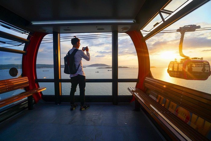 Một trải nghiệm khác nhất định không được bỏ qua khi tới đảo Ngọc là bay trên đại dương xanh và chạm tay vào mây bạc bằng cách… đi cáp treo Hòn Thơm - cáp treo 3 dây vượt biển dài nhất thế giới. Từ trong cabin, một tầm nhìn panorama sẽ giúp bạn thu trọn vào mắt toàn cảnh biển đảo đẹp mê hồn như một thiên đường nhiệt đới giữa nhân gian.