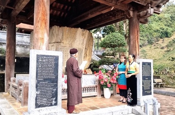 Du khách đến tham quan, tìm hiều về bia Lê Lợi - bảo vật quốc gia ở Đền thờ Vua Lê Lợi, xã Lê Lợi, huyện Nậm Nhùn, tỉnh Lai Châu. Ảnh: Nguyễn Oanh