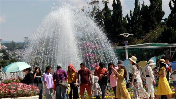 Vườn hoa thành phố Đà Lạt khá đông du khách tới tham quan