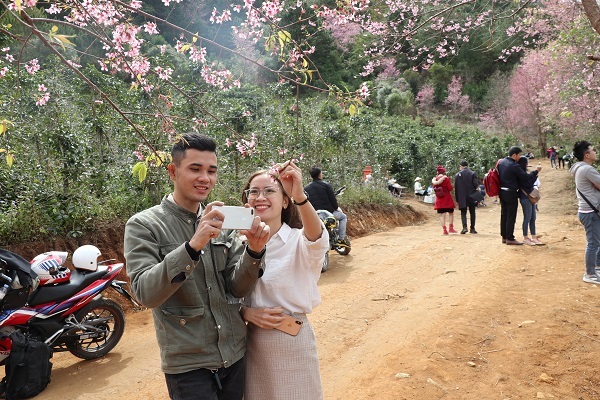 Du khách hào hứng chụp hình với hoa Mai Anh đào