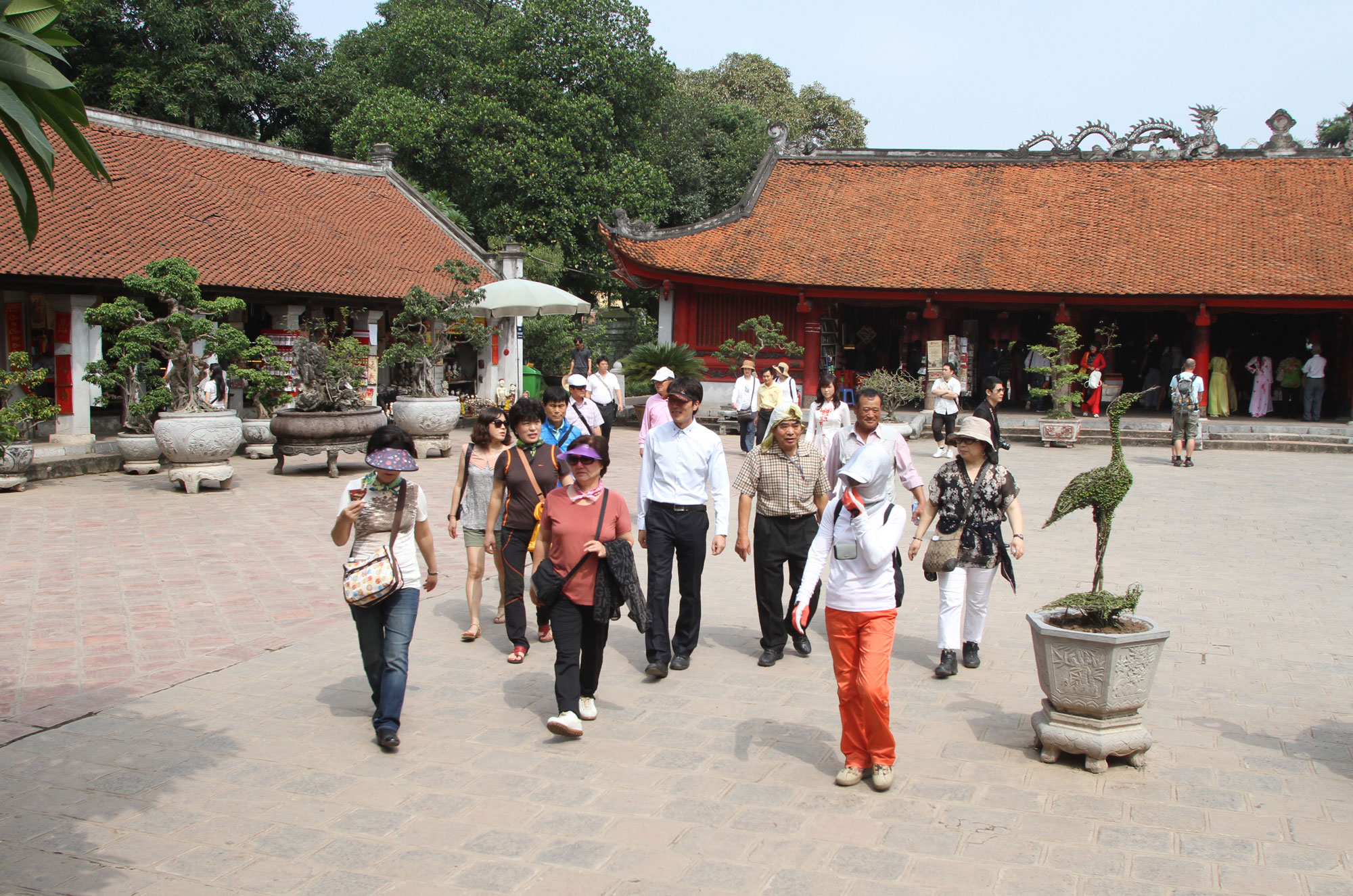 Du khách quốc tế tham quan Văn Miếu - Quốc Tử Giám Ảnh: NGỌC THÀNH