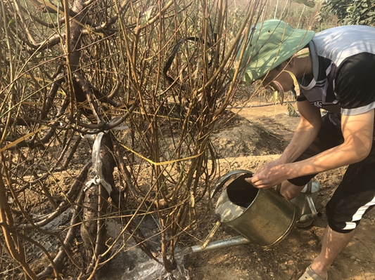 Bà Thủy cho biết thêm: “Nhiều khi cả ngày bạc mặt trên vườn để chăm cây. Có người nói mình chỉ biết đến đào chứ biết gì khác đâu. Nghe thì chua chát thật nhưng đó là cái nghề của mình. Sản nghiệp của gia đình đổ cả vào từng gốc đào, mầm cây, nụ hoa nên giờ phải tổng lực chăm sóc. Bỏ công, bỏ của cả năm trời chỉ mong sao lo được cái Tết cho gia đình”.