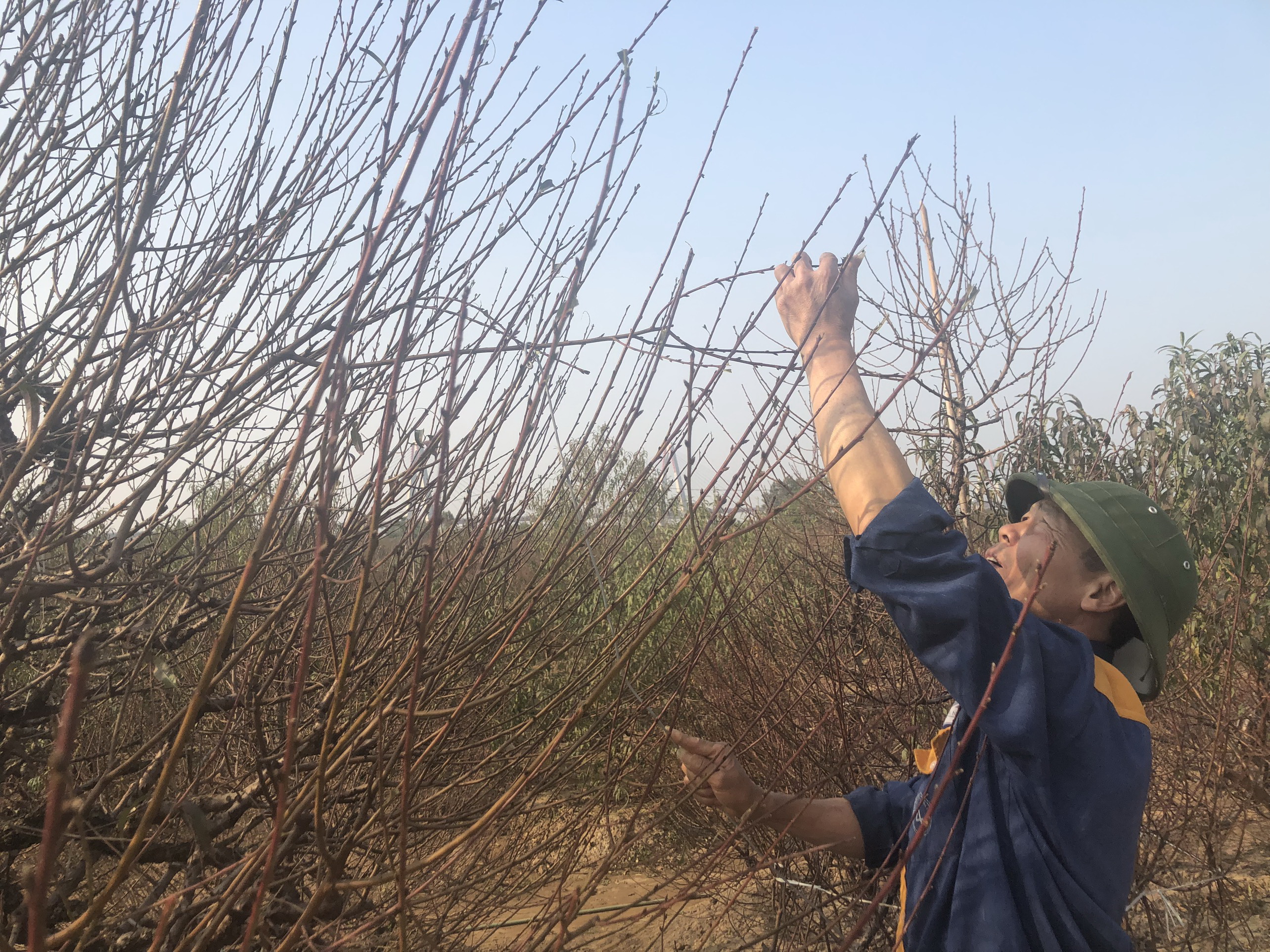 Hơn 30 năm làm nghề trồng đào, ông Đỗ Quý Mão (chủ vườn đào Mão Huệ) cho biết những ngày gần đây, nhiệt độ ngày đêm chênh lệch đến cả chục độ nên phải để ý thường xuyên. Nếu không, đào rất dễ nở sớm, chóng tàn. Tạm thời, thời tiết vẫn ủng hộ những người trồng đào. Đào thường đẹp nhất nếu nở đúng vào 27 Tết nhưng nếu nhiệt độ tăng cao, nắng mạnh, đào rất dễ nở ồ ạt, khó kiểm soát. Bên cạnh đó với gần 500 gốc đào, ông Mão phải thuê thêm nhân công chăm với giá 300.000 – 400.000 đồng một ngày. Chưa kể, chi phí đầu tư cho phân bón, đất, cây giống của ông hiện cũng đã lên hơn 400 triệu đồng. Nếu bán được, gia đình ông có thể thu về số tiền lớn. Nhưng nếu hoa không nở đúng dịp, nguy cơ thua lỗ nặng là rất cao.