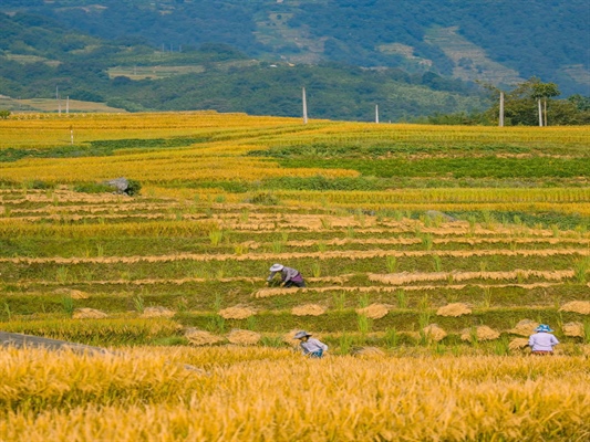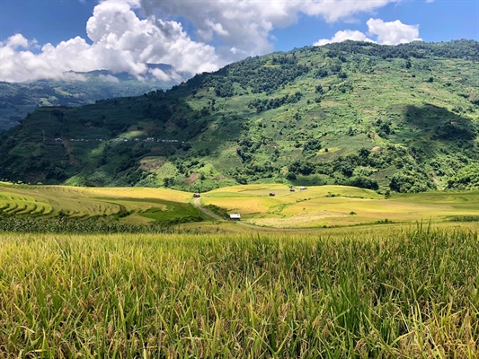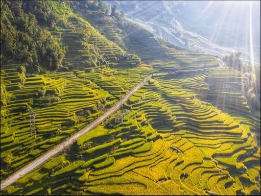 Đây đó trên những thửa ruộng bậc thang, tiếng cười nói rộn ràng, bàn tay thoăn thoắt gom mùa thu về đổ đầy sân phơi. Đó không chỉ là vì thời khắc cả đất trời khoác lên mình chiếc áo thu vàng, không chỉ là hương thơm ngọt ngào trong gió. Mà còn vì, đó là khi thành quả lao động suốt một năm dài của những người con nơi núi đồi được kết tinh, đọng lại trong từng hạt trắng dẻo thơm lừng.