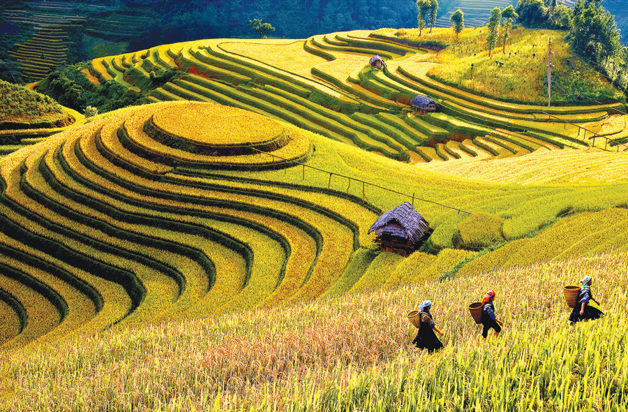Ruộng bậc thang ở huyện Mù Cang Chải, tỉnh Yên Bái gắn liền với lịch sử cư trú của người Mông. Với những cố gắng ngày qua ngày, những người con Tây Bắc đã biến những ngọn núi khô cằn sỏi đá thành những thửa ruộng màu mỡ, đẹp đến ngỡ ngàng. Để đến khi mùa thu ghé qua đây, những bậc ruộng ấy lại đổi màu, khoe sắc rực rỡ trên những triền núi hùng vĩ, chiếm trọn trái tim những du khách may mắn được một lần chiêm ngưỡng.