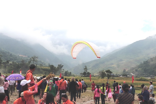 Trước đó vào sáng 21.9, lễ khai mạc Festival dù lượn mang tên “Bay trên mùa vàng 2019” đã diễn ra tại bãi đáp dù lượn Lìm Mông dưới chân đỉnh đèo Khau Phạ thuộc huyện Mù Cang Chải (Yên Bái), thu hút sự quan tâm của đông đảo người dân và du khách. Ngoài hàng ngàn người dân và du khách dự lễ khai mạc, trên quãng đường đèo từ thung lũng Lìm Mông lên đỉnh Khau Phạ, rất nhiều du khách đứng kín đặc các điểm có thể ngắm dù lượn. Cách đỉnh đèo cũng là điểm xuất phát dù lượng khoảng 2 km, đường tắc cứng và dày đặc các phương tiện chờ lên đỉnh đèo.