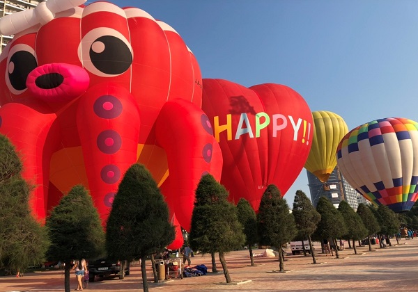 Có khoảng gần chục khinh khí cầu "treo" lơ lửng trên bầu trời xanh trên biển Phạm Văn Đồng (bao gồm 03 khinh khí cầu đặc biệt, 02 khinh khí cầu bay treo, 02 khinh khí cầu mini).