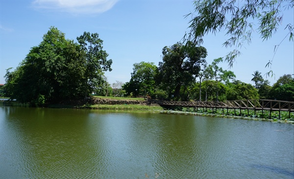 Một góc mặt nước Hồ Tịnh Tâm đã thoáng và xanh trong hơn sau khi được tích cực vệ sinh môi trường và trục vớt bèo