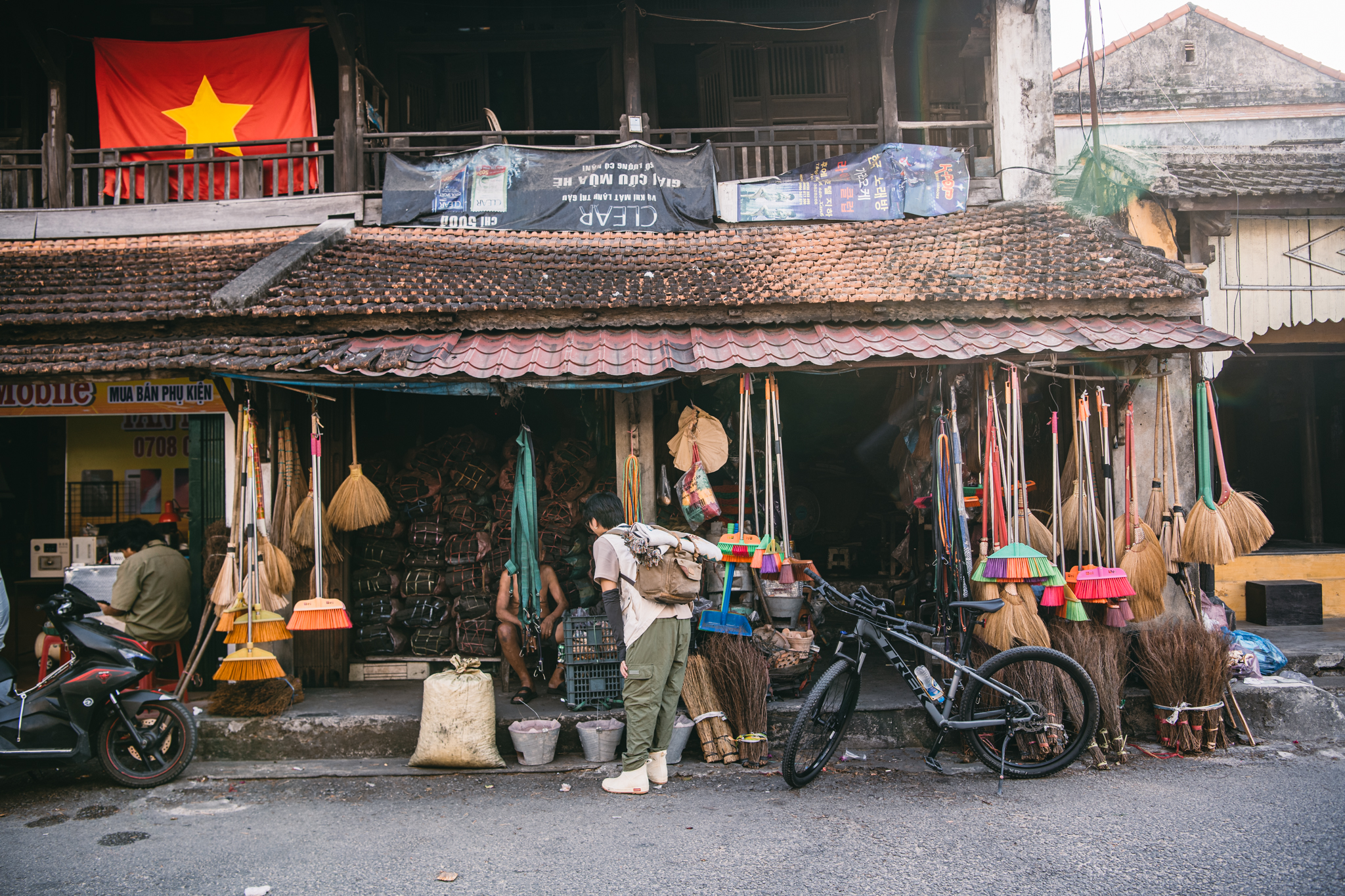 Hành trình Media trip "Visit Hue" đã chính thức khởi động với điểm dừng chân đầu tiên là phố cổ Bao Vinh. Nằm cách trung tâm thành phố Huế khoảng 3 km, Bao Vinh từng là thương cảng lớn nhất của xứ Đàng Trong từ thế kỷ 17 đến thế kỷ 19. Ngày nay, du khách thường biết đến Bao Vinh qua bộ phim Mắt Biếc, mà ít ai biết rằng, tới Huế, dành một buổi chiều lang thang ở khu phố cổ này cũng là một trải nghiệm lý thú. Tại Bao Vinh, mỗi thành viên trong đoàn được "cấp" một chiếc xe đạp để tự mình khám phá các ngóc ngách phố cổ. Con phố không dài nhưng cần khá nhiều thời gian, bởi cứ cách vài mét, một khung cảnh cổ tích lại hiện ra. Có những dãy nhà, biển hiệu màu sắc lấp lánh trong nắng; có tiệm hớt tóc bình dân ẩn trong căn nhà gỗ "vàng son" một thời; hay có những cửa hàng bán... chổi, bán sinh tố, cũng hóa "thơ" dưới lớp màu của thời gian.