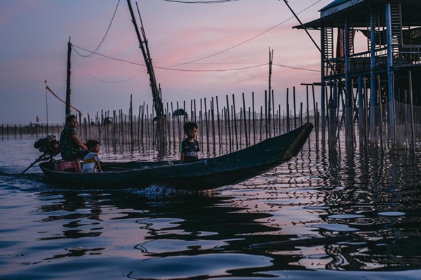 Travel blogger Lỗ Hữu Đức Anh và các thành viên tận hưởng hoàng hôn ở rừng ngập mặn Rú Chá
