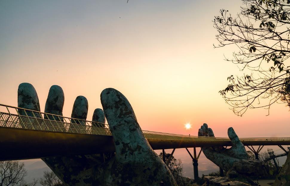 Để bắt được khoảnh khắc sớm mai trên Cầu Vàng, bạn nên nghỉ đêm ngay tại khách sạn trên đỉnh Bà Nà và dậy thật sớm để đón bình minh dần ló rạng trên cây cầu từng được tạp chí TIME của Mỹ mô tả "như bước ra từ thần thoại".