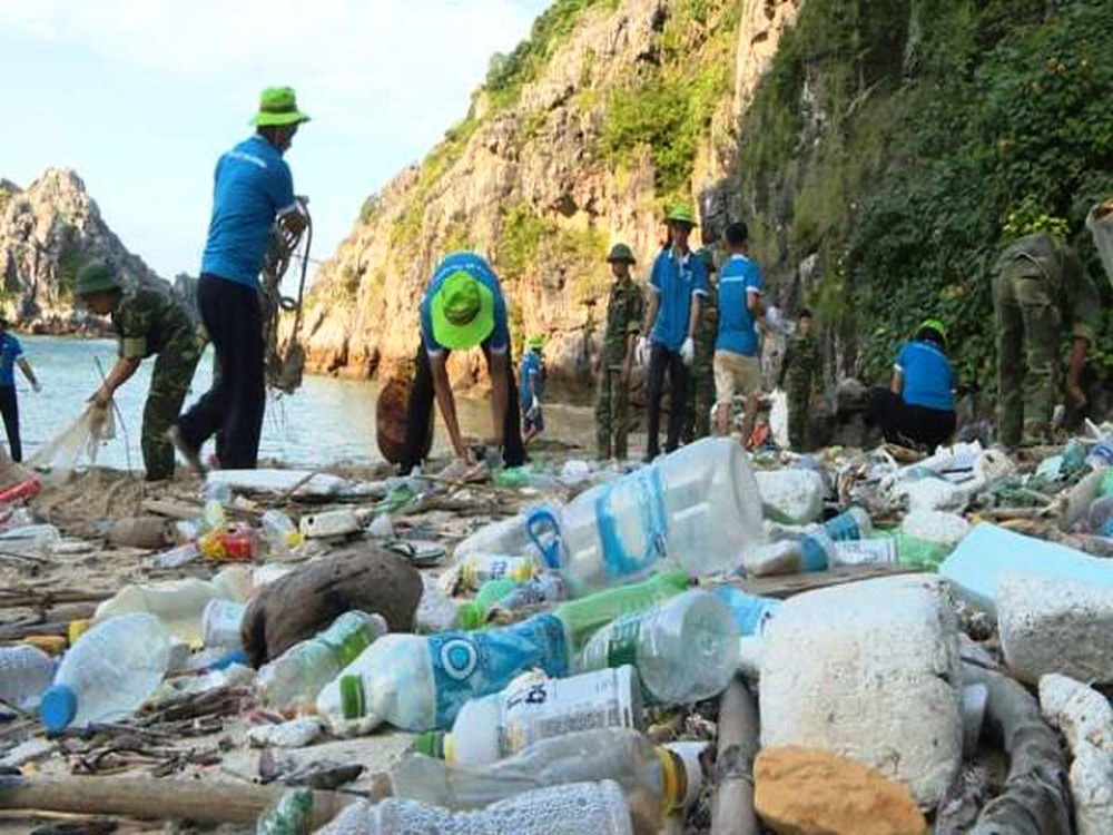 Thu gom rác thải nhựa tại bãi biển Cát Bà