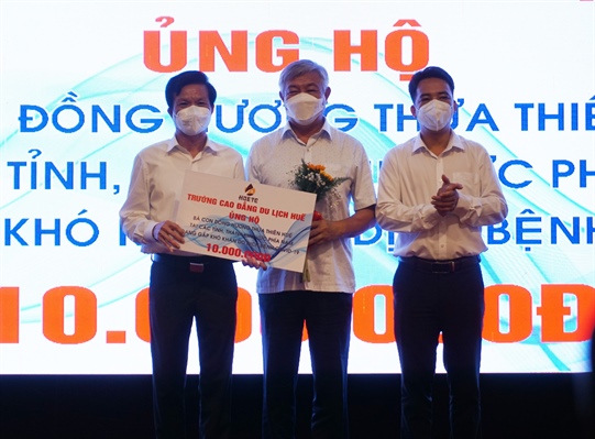 Lãnh đạo Trường CĐ Du lịch Huế (thuộc Bộ VHTTDL) đóng góp hỗ trợ tại chương trình phát động