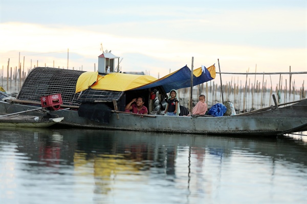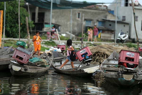 Những cư dân nhí tại đầm Chuồn được tiếp xúc với nước từ bé nên rất tự tin di chuyển trên thuyền.