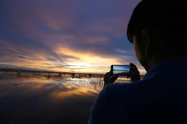 Được tận mắt chiêm ngưỡng phong cảnh đẹp mê hồn tại đầm Chuồn, chị Vũ Minh Trang (khách du lịch từ Hà Nội) cho rằng, không gian rộng lớn cùng bầu trời và mặt nước đã tạo nên những khuôn hình đẹp như tranh vẽ.