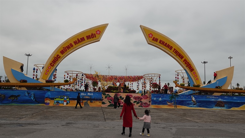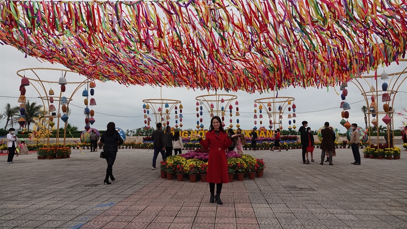 Trong khi đó, tại Quảng trường biển Bảo Ninh, những sắc màu, hình khối được lắp đặt, bố trí hài hoà, đẹp mặt đã góp phần tạo không khí ngày xuân rộn ràng, tươi vui giữa tiết trời se lạnh của thành phố du lịch Đồng Hới.