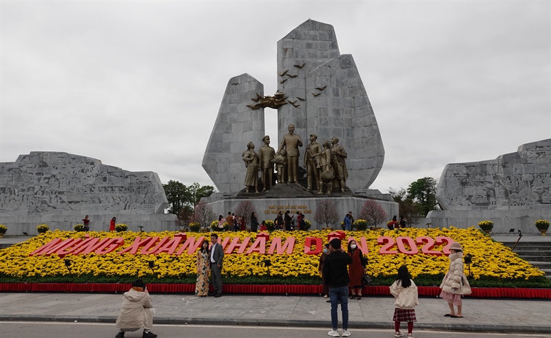 Chiều ngày mùng 1 Tết Nguyên đán Nhâm Dần, gia đình chị Võ Thị Thuỳ Dương (ở phường Nam Lý, thành phố Đồng Hới) du xuân tới Quảng trường Hồ Chí Minh. Cùng với việc tuân thủ các biện pháp phòng, chống dịch Covid-19, chụp những bức hình làm kỉ niệm, gia đình chị Dương đã chỉ dẫn, giới thiệu cho con về tượng đài Bác Hồ, về từng nhân vật trên cụm tượng đài.
