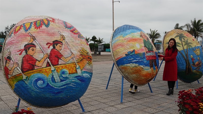 Tại khu nghệ thuật “Đồng Hới chào xuân” đã lôi cuốn đông đảo du khách và người dân đến chiêm ngưỡng. Hình tượng về thành phố biển du lịch Đồng Hới được tái hiện qua nét vẽ trên những chiếc thuyền thúng, đèn lồng, biểu tượng con hổ, các cụm hoa rực rỡ sắc xuân.