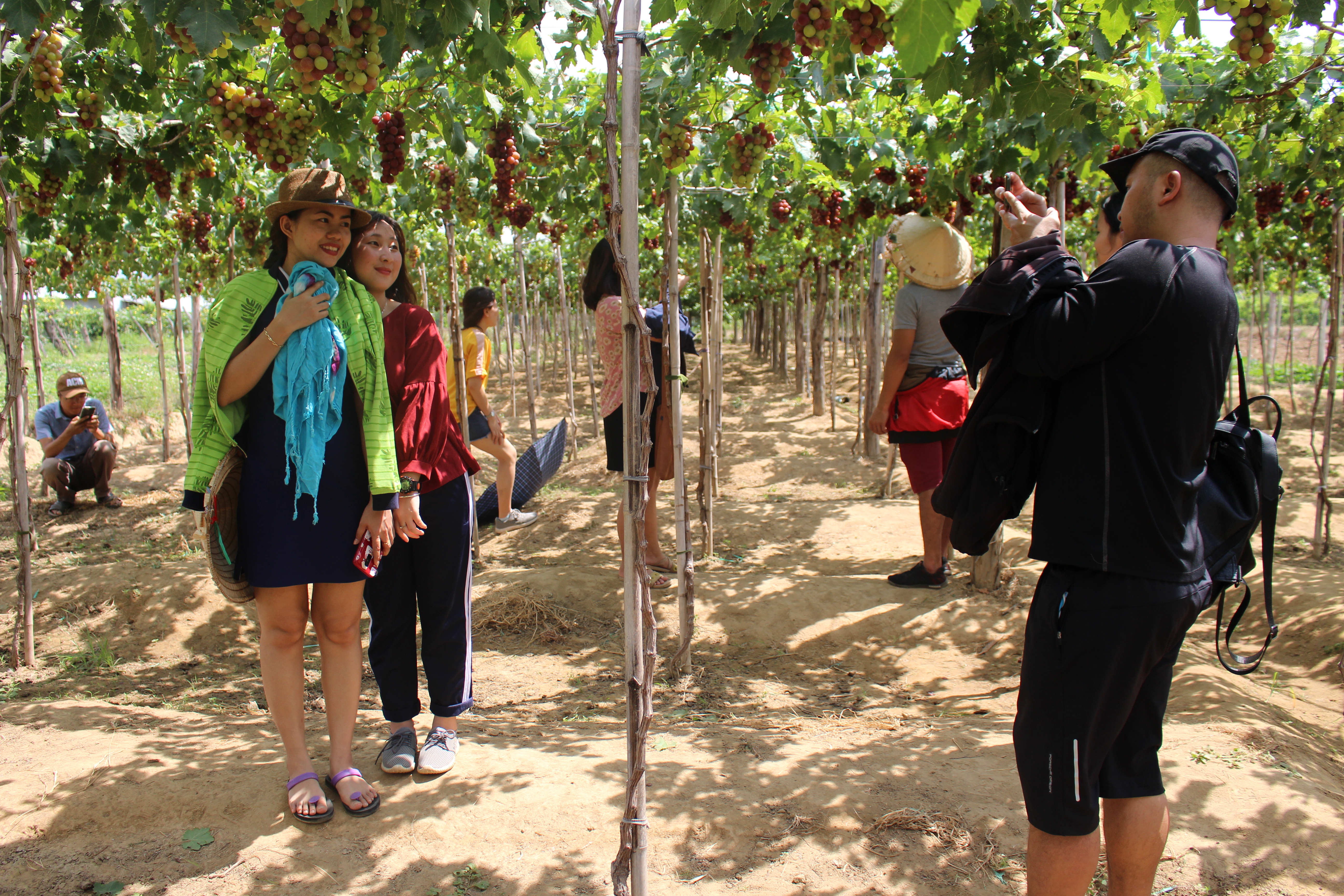 Bên cạnh trang trại nho Ba Mọi, các vườn nho trong xã Phước Thuận (Ninh Phước) cũng thu hút đông du khách thập phương đến tham quan, trải nghiệm. Chị Nguyễn Thị Phúc, du khách đến từ TP Hồ Chí Minh vui vẻ: “Sau nhiều lần đến tham quan tại trang trại nho Ba Mọi, năm nay để tìm sự khác biệt mình cùng nhóm bạn đến trải nghiệm các vườn nho ở thôn Phước Khánh (Phước Thuận). Tuy không chuyên nghiệp như ở trang trại nho Ba Mọi nhưng đến đây, mình được chủ vườn đón tiếp bằng sự chân tình, mến khách; được tận mắt cùng với người dân thu hoạch những trái nho căng mọng, được mua nho tươi tận vườn với giá cả khá “mềm”.