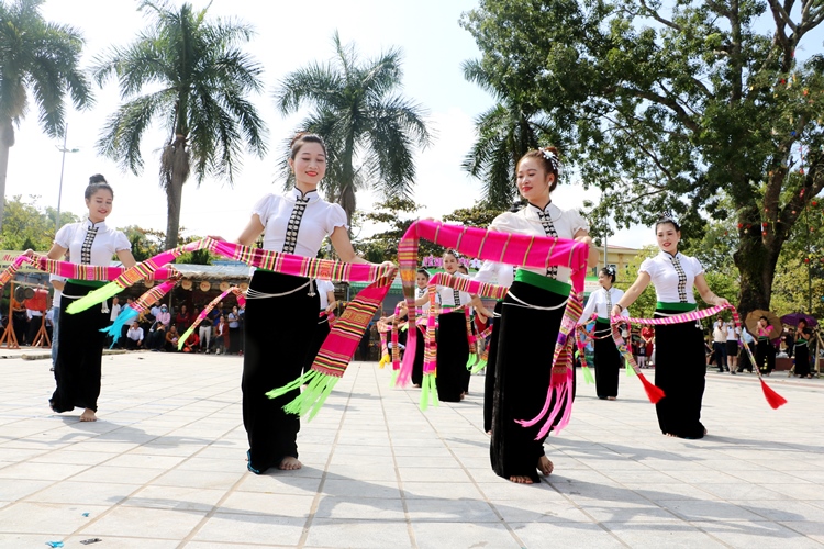 Phụ nữ dân tộc Thái trong làn điệu xòe cổ truyền thống đặc sắc. Ảnh minh họa