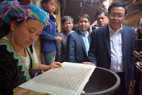 Phó Thủ tướng Chính phủ Vương Đình Huệ thăm hộ gia đình làm du lịch homestay ở bản Sin Suối Hồ, xã Sin Suối Hồ, huyện Phong Thổ, Lai Châu. Ảnh: N.Kiểm