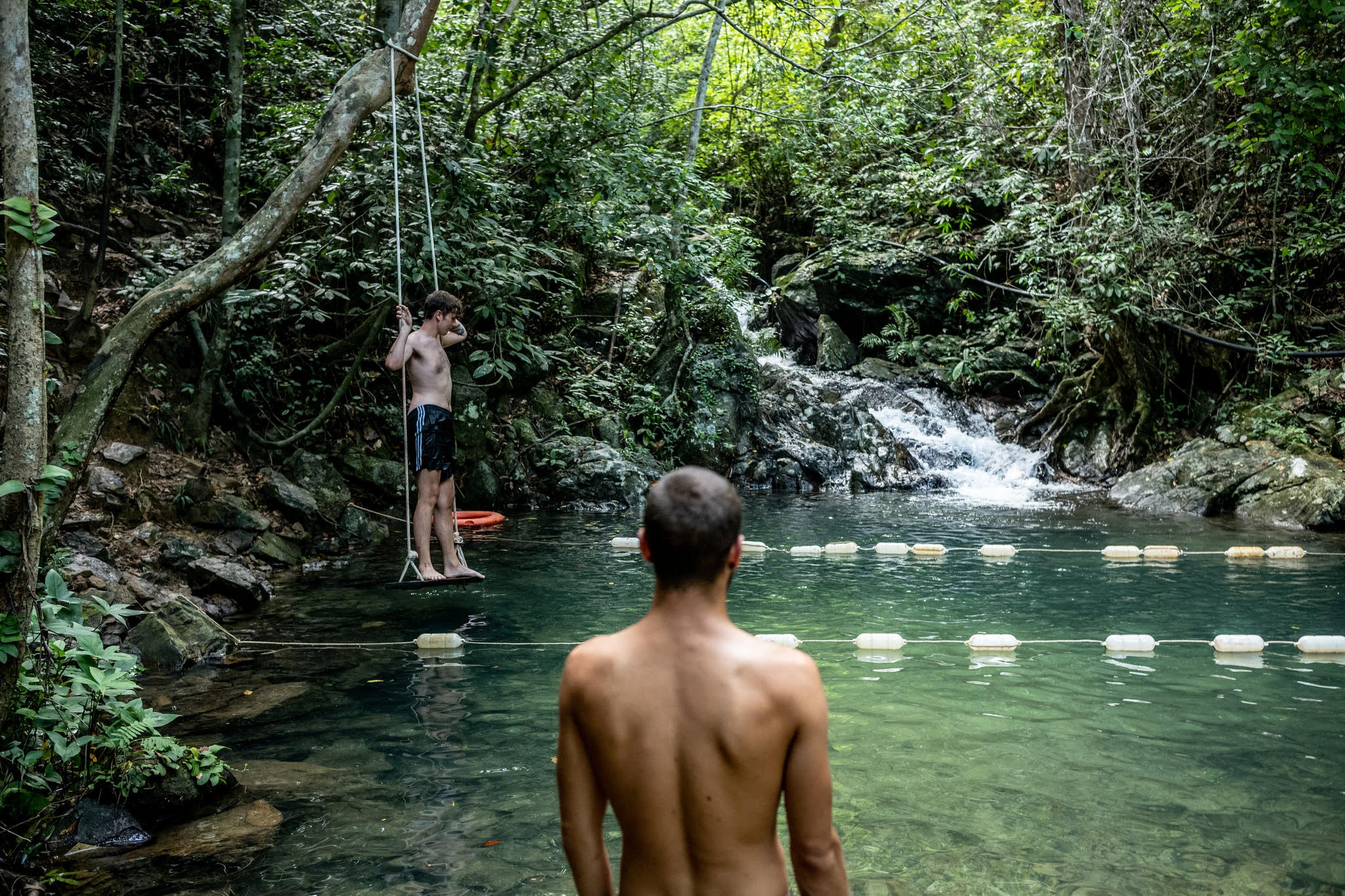 Tại Vườn quốc gia Phong Nha - Kẻ Bàng, du khách có thể bơi dưới chân thác nước hoặc đi bộ trong rừng rậm Ảnh: THE NEW YORK TIMES