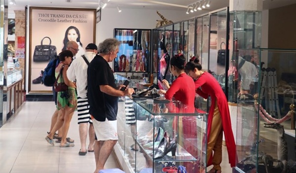 Du khách quốc tế tham quan, mua sắm tại cơ sở ngọc trai Ngọc Hiền, huyện đảo Phú Quốc