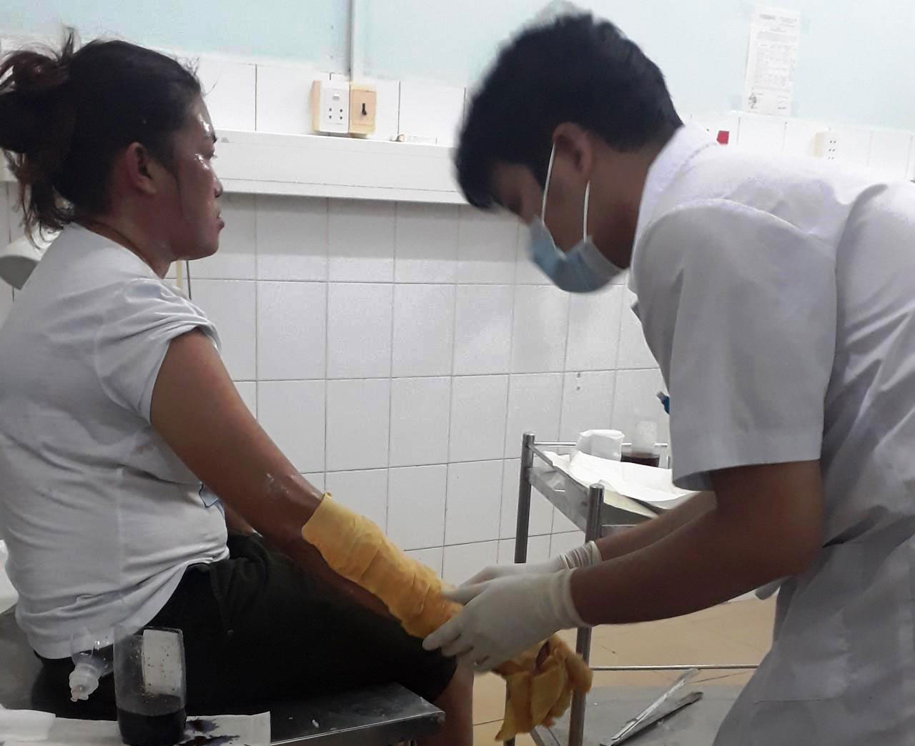 Bác sĩ đang chăm sóc cho một thực khách nước ngoài bị bỏng
