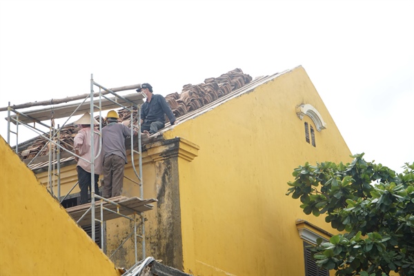Quy chế vừa ban hành sẽ tạo cơ sở pháp lý cụ thể trong công tác bảo vệ, phát huy hiệu quả Di sản văn hóa thế giới Khu phố cổ Hội An (trong ảnh: Trùng tu mái ngói nhà cổ ở khu phố cổ Hội An)