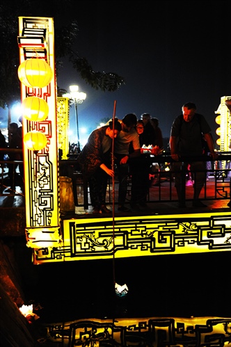 Du khách cùng người dân thả hoa đăng cầu năm mới bình an