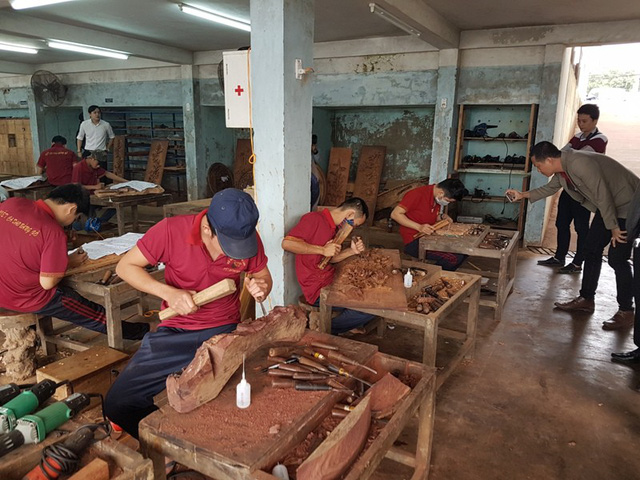 Cơ sở sản xuất gỗ mỹ nghệ với hàng trăm lao động, là nơi du khách khám phá khi đến vùng Gò Nổi