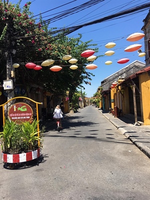 Phố cổ Hội An vắng vẻ vì ảnh hưởng dịch bệnh Covid-19. Ảnh chụp sáng ngày 28.7