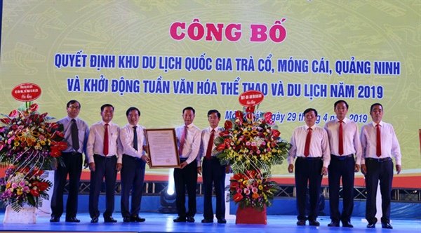 Trước đó, ngày 24.4, Thứ trưởng Bộ VHTTDL Lê Quang Tùng ký Quyết định số 1501/QĐ-BVHTTDL công nhận Khu du lịch quốc gia Trà Cổ, Móng Cái, Quảng Ninh. Khu du lịch quốc gia Trà Cổ, Móng Cái, Quảng Ninh có diện tích 44.036 ha. Trong đó, diện tích mặt đất 18.238 ha, diện tích mặt nước 25.798 ha với ranh giới: Bắc giáp sông Ka Long (giáp Trung Quốc), Nam giáp biển Đông; Đông giáp Trung Quốc và biển Đông; Tây giáp phường Hải Yên (TP Móng Cái).