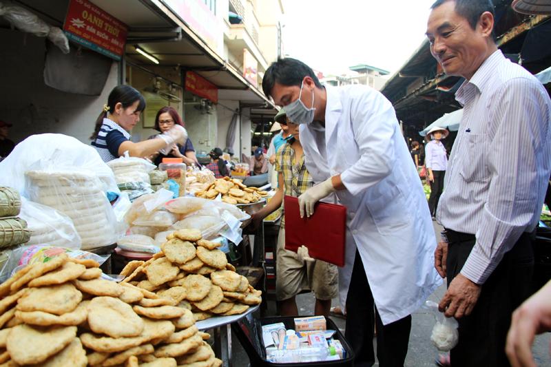 Lực lượng chức năng Quảng Ninh kiểm tra thực phẩm tại chợ.