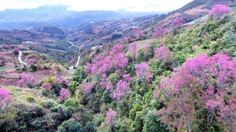 Bên cạnh những thửa ruộng bậc thang, vẻ đẹp thuần khiết của một loài hoa rừng mang tên Tớ Dày hay còn gọi là “hoa đào rừng” báo hiệu mùa Xuân sớm ở nơi rẻo cao Tây Bắc.