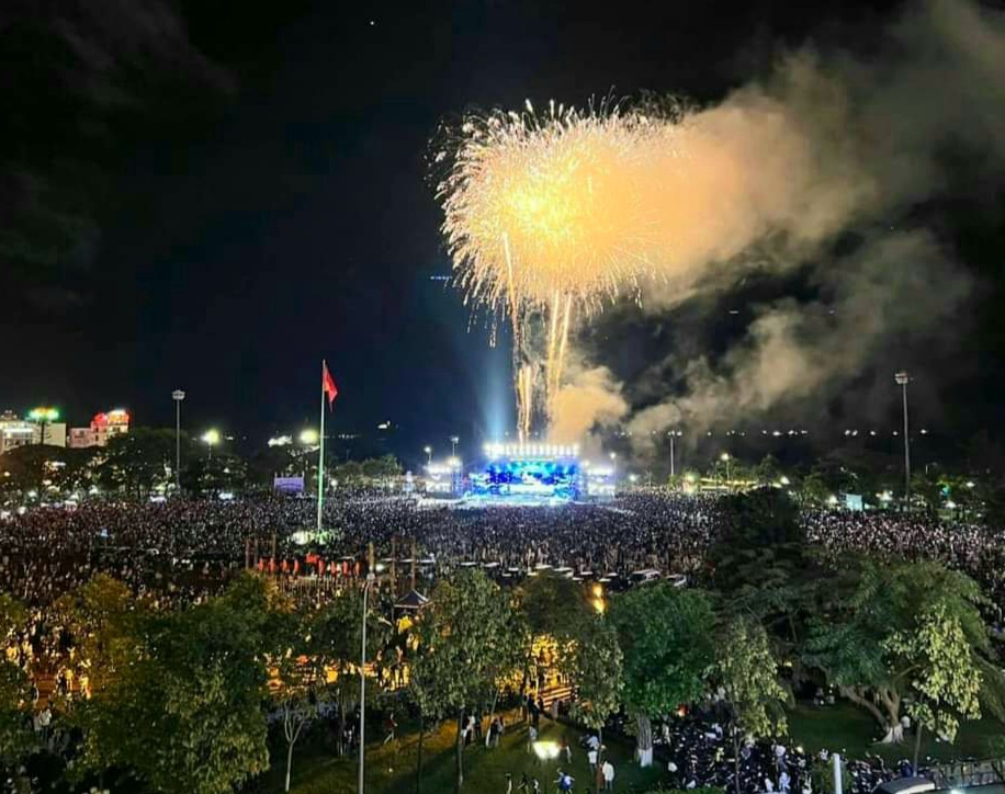 Màn bắn pháo hoa tầm thấp thu hút đông đảo người dân và du khách