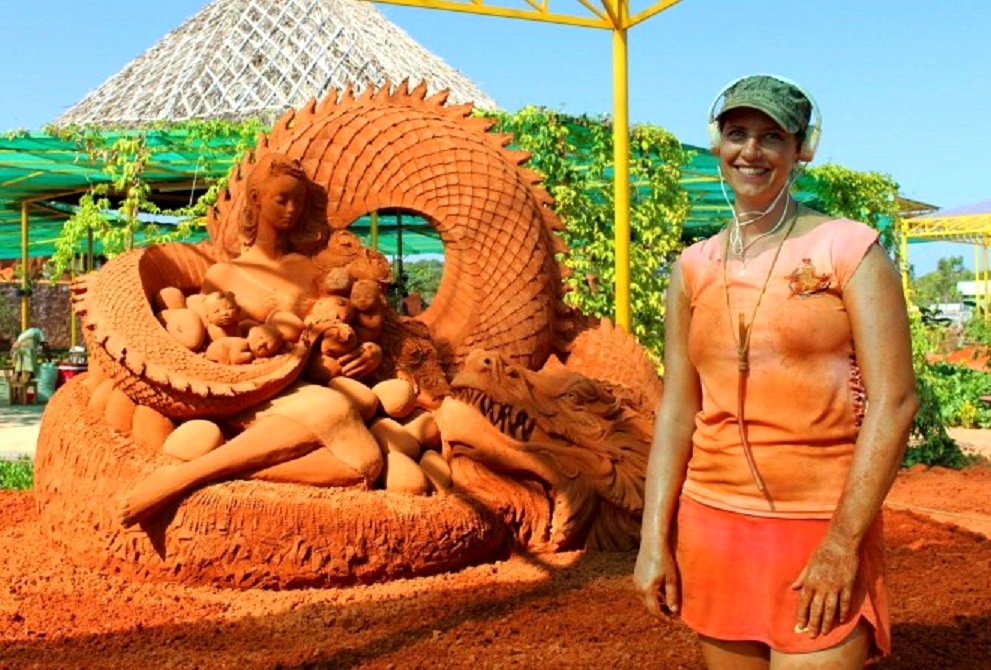 Mới đây, chúng tôi có dịp được chiêm ngưỡng những bức tượng bằng cát (lấy từ đồi cát Hồng) của những nghệ nhân thuộc nhiều nước tới Phan Thiết sáng tác. Lần đầu tiên nước ta có một “Công viên tượng cát”, được trưng bày tại phố Nguyễn Thông, thành phố Phan Thiết. Với chủ đề “Thế giới cổ tích”, mỗi bức tượng đều được sáng tác dựa trên những biểu tượng văn hóa, hay câu chuyện cổ tích Việt Nam và thế giới. Người xem ngỡ ngàng, không hiểu các nghệ sĩ đã đục đẽo trên cát như thế nào. Trước mắt họ là những câu chuyện “Sự tích Trung thu”, “Dế và Kiến”, “Chùa Thiên Mụ”, hay như “Con rồng cháu tiên”, “Cóc kiện trời”, “Sơn Tinh Thủy Tinh”… Tất cả đều một màu hồng đỏ, với những vết khắc đầy góc cạnh, gây sự thu hút đến bất ngờ. Riêng bức “Kinh Kong” cao lớn, dữ dội càng hấp dẫn người xem, bên cạnh đó câu chuyện “Nàng Bạch Tuyết và bảy chú lùn” lại dịu dàng, ấm áp.