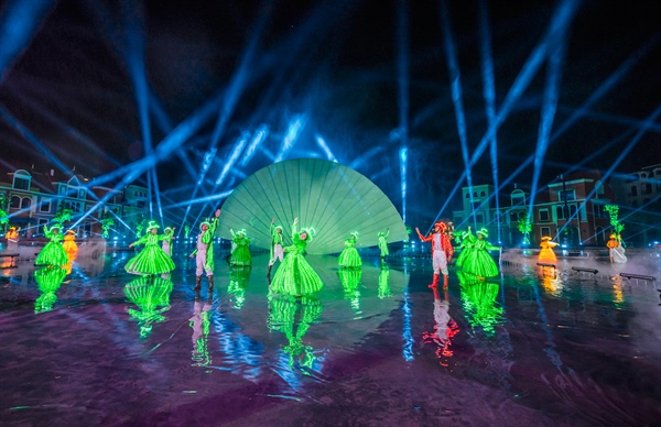 Tạm biệt kinh thành cổ, du khách sẽ lạc vào siêu show “Sắc màu Venice”trên mặt nước của Hồ Trung tâm với vũ điệu ánh sáng của tình yêu và trình diễn nhạc nước tràn ngập sự lãng mạn. Sự phản chiếu của ánh sáng – nước – lửa... trở nên lộng lẫy choáng ngợp bàn tay dàn dựng tài ba của đạo diễn Việt Tú - nhạc sĩ Dương Khắc Linh và biên đạo múa Minh Thư.
