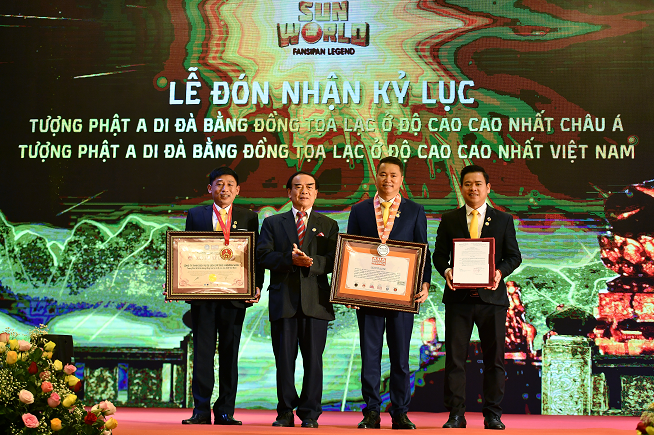 Cũng trong buổi lễ, ông Trịnh Xuân Trường đã thay mặt chính quyền tỉnh Lào Cai trao tặng Bằng khen của tỉnh cho Công ty TNHH Dịch vụ Cáp treo Fansipan Sa Pa, ghi nhận những đóng góp xuất sắc của doanh nghiệp này cho sự phát triển của du lịch Lào Cai, Sa Pa từ năm 2016 - 2021. Đồng thời, công trình Đại tượng Phật A Di Đà thuộc quần thể tâm linh trên đỉnh Fansipan cũng được Tổ chức Kỷ lục Châu Á (Asia Book Records) trao chứng nhận “Tượng Phật A Di Đà bằng đồng tọa lạc tại độ cao cao nhất Việt Nam” và “Tượng Phật A Di Đà bằng đồng tọa lạc ở độ cao cao nhất châu Á”.