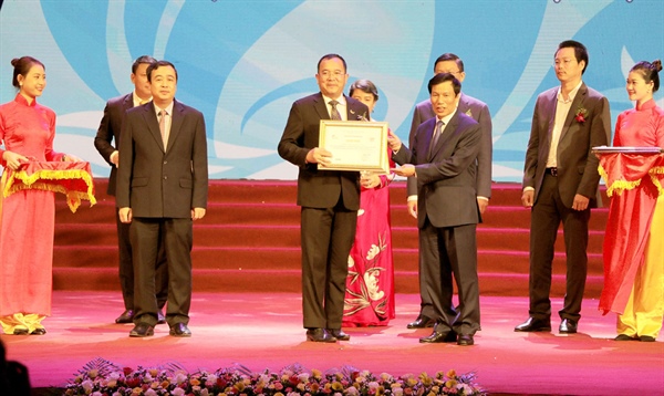 Lãnh đạo Tập đoàn khách sạn Mường Thanh (đứng thứ 3 từ trái sang) nhận Giải thưởng doanh nghiệp đầu tư và kinh doanh có đóng góp lớn cho ngành Du lịch