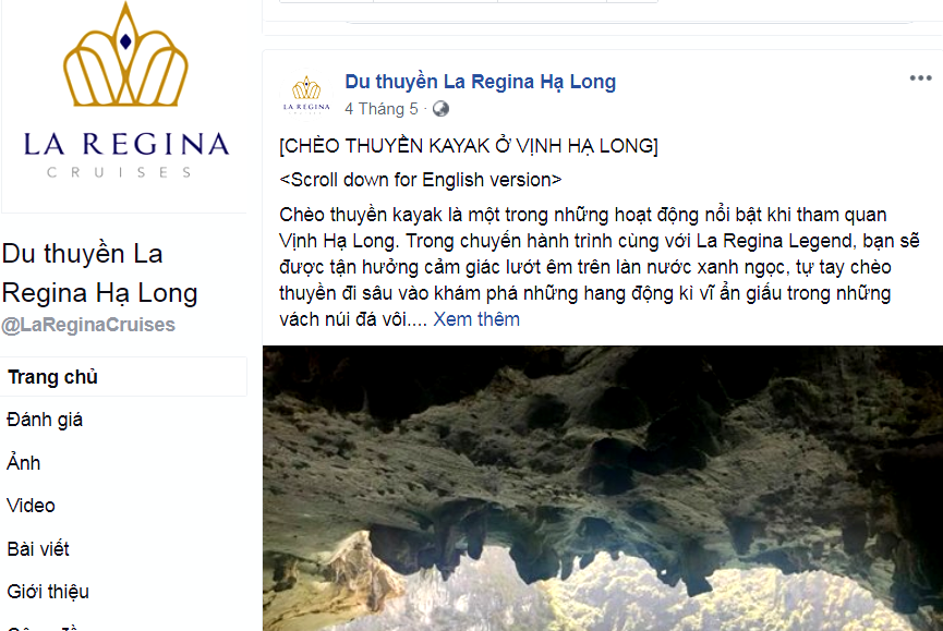 Đơn vị sở hữu tàu La Regina Legend còn nhân danh cả những điều cao cả để nâng mình lên: “Trước những lo ngại về tàu du lịch Hạ Long ngủ đêm kém chất lượng tại khu vực Hải Phòng hồi đầu năm nay, bộ sưu tập du thuyền La Regina sẽ chứng minh một tinh thần làm du lịch nghiêm túc, chuyên nghiệp với dịch vụ đạt tiêu chuẩn chất lượng cao”. Khó ai có thể tin được quảng cáo ở một nơi (Hạ Long), hoạt động lại ở một nơi khác (Cát Bà) là “nghiêm túc và chuyên nghiệp”.