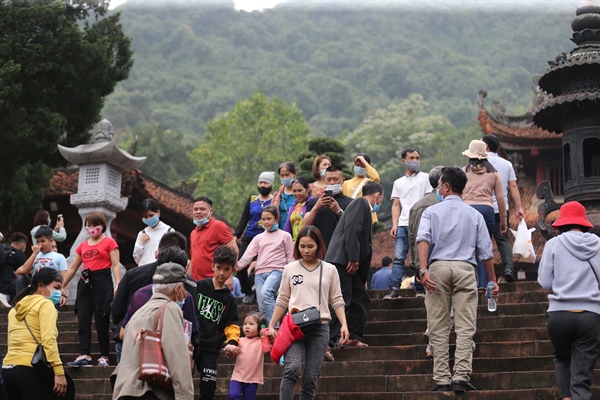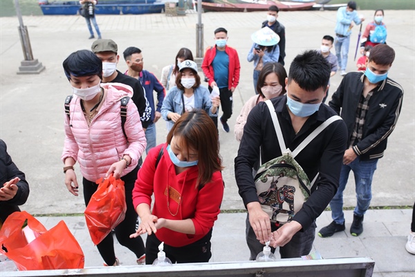 Du khách đến lễ chùa, tham quan, vãn cảnh chùa Hương đều phải thực hiện nghiêm thông điệp 5K của Bộ Y tế, trong đó có việc đeo khẩu trang phòng chống dịch