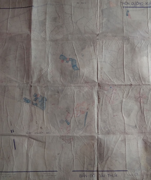 Đây là tấm bản đồ giải thửa thôn Dương Xuân Thượng (nay thuộc thôn Thượng 3, phường Thủy Xuân, TP Huế) được vẽ với kích thước 102 x 73 (cm), có tỉ lệ 1/2000. Theo thông tin đi kèm, bản đồ do ông Nguyễn Biểu vẽ xong ngày 6.11.1962, và được chứng thực ngày 13.2.1963 bởi kỹ sư địa chất Huỳnh Phú Diên, là Chánh thanh tra Tổng Giám đốc điền địa lúc bấy giờ. Trên bản đồ này có vẽ những thông tin chi tiết giải thửa và đánh dấu vị trí khu vực lăng vua Tự Đức, lăng vua Đồng Khánh. Ngoài ra, nhiều thửa đất trùng với một số khu lăng mộ của các bà vợ của vua Tự Đức cũng được khoanh vùng và ký hiệu rõ ràng.