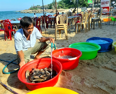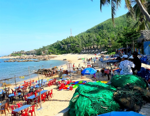 Các hộ kinh doanh bày bàn ghế, các vật dụng ra bãi biển chiếm không gian, kinh doanh hải sản, phục vụ ăn uống