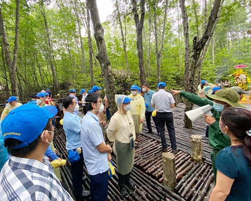 Thứ hai là tour “Cần Giờ - Thiên nhiên tươi đẹp” phục vụ 120 y bác sĩ đại diện của các đoàn bệnh viện Trung ương, Sở Y tế các tỉnh-thành phố, các đơn vị tham gia hỗ trợ công tác phòng, chống dịch bệnh tại TP.HCM trong thời gian vừa qua. Tại huyện đảo Cần Giờ, đoàn có dịp khám phá những đặc trưng của vùng đất được mệnh danh là “lá phổi xanh” của Thành phố, nơi có khu dự trữ sinh quyển thế giới rừng ngập mặn đầu tiên của cả nước, Căn cứ cách mạng chiến khu rừng Sác, Khu du lịch sinh thái Vàm Sát và Khu du lịch Dần Xây để tìm hiểu về cảnh quan thiên nhiên rừng ngập mặn với hệ sinh thái đa dạng và độc đáo.