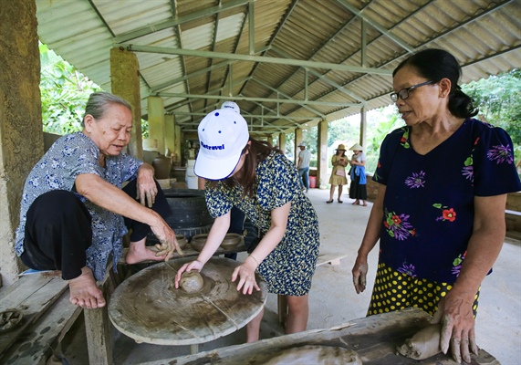 Trải nghiệm làm gốm truyền thống tại làng cổ Phước Tích Ảnh: Ban quản lý làng cổ Phước Tích