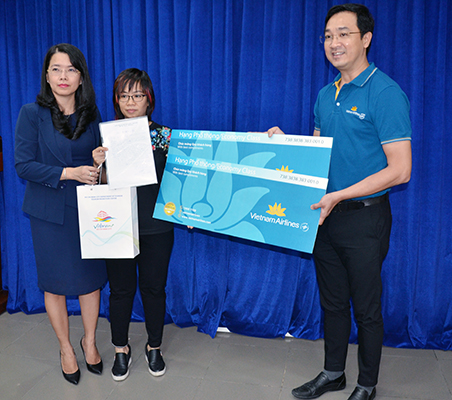 Đại diện Sở Du lịch TP. HCM và Vietnam Airlines trao tặng cặp vé khứ hồi Nhật Bản – Việt Nam với hy vọng sớm chào đón cụ Oki Toshiyuki trở lại Việt Nam